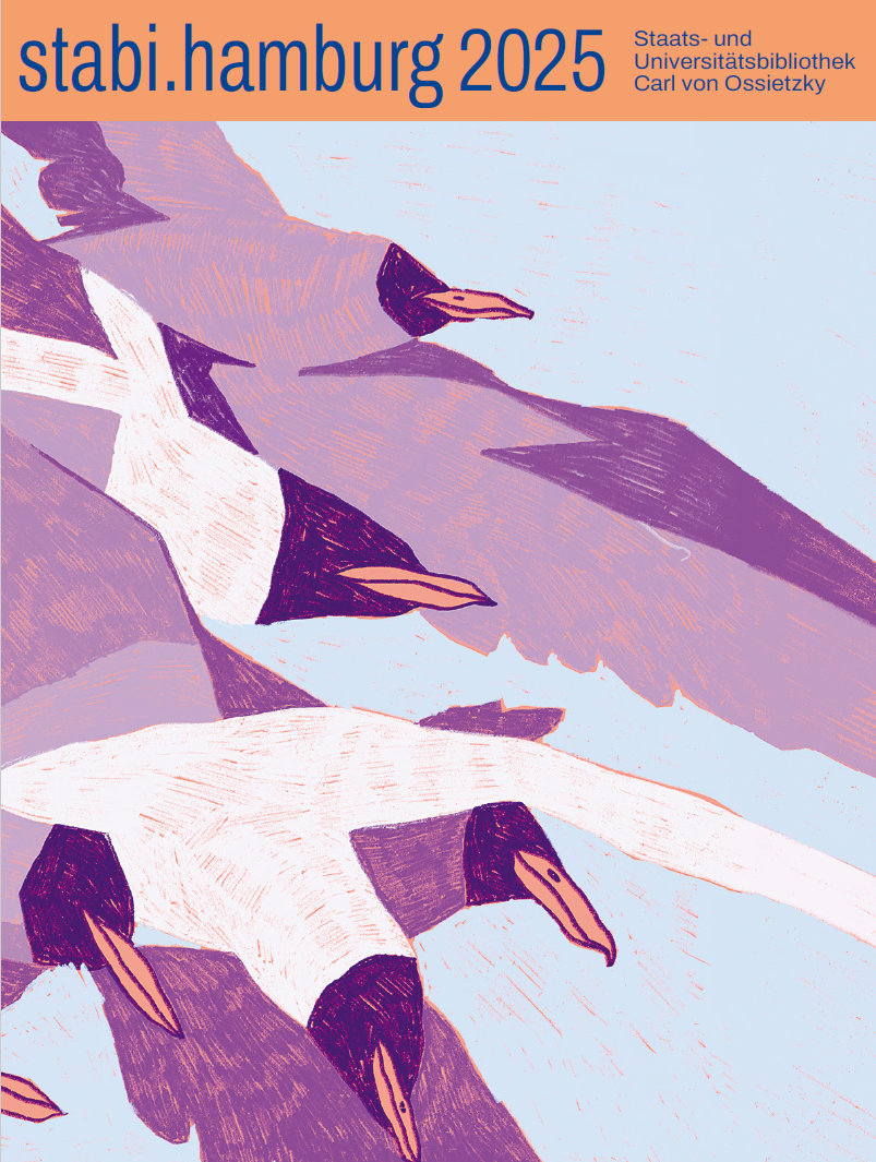 Die Staats- und Universitätsbibliothek Hamburg präsentiert in ihrer zweiten Ausgabe des neuen Jahresmagazins ihre Entwicklungen und Aktivitäten. Mit dem Magazin stabi.hamburg 2025, das gleichzeitig elektronisch und gedruckt erscheint, berichten wir zum zweiten Mal über das vielseitige und bunte Leben in der Stabi – und über die Menschen, die in ihr forschen, studieren, arbeiten bzw. ihr freundschaftlich verbunden sind. Die ausgesprochen positive Resonanz zur ersten Ausgabe hat uns ermutigt, auf diesem Weg weiterzumachen.