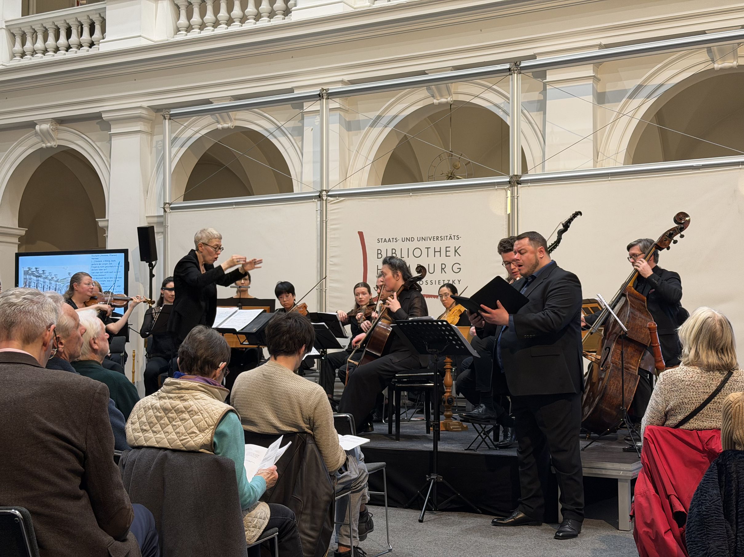 Mit der Hamburger Erstaufführung von „Pharao Tubaetes“ setzt das Ensemble barockwerk hamburg mit seiner musikalischen Leiterin Ira Hochman und herausragenden, in der Barockmusik erfahrenen Sängerinnen und Sängern seine Reihe von außergewöhnlichen Opernproduktionen im Lichthof der Staats- und Universitätsbibliothek fort.